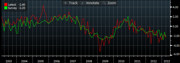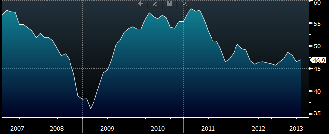 Euro-zone PMI Composite at 46.9 versus 46.6 expected and 46.5 previous estimate.