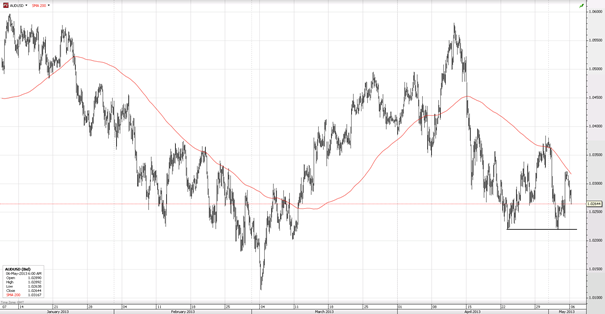 Austraalia dollar on hetkeseisuga suurim langeja USA dollari suhtes, mis on peamiselt tingitud täna avaldatud märtsikuu nõrkadest jaemüügi tulemustest (-0,4% vs oodatud +0,1% ja eelmisel kuul +1,3% M/M) ning lisaks ka öösel avaldatud Hiina teenindussektori PMI indeksist, mis langes eelmise kuu 54,3 pealt 51,1 punktini aprillis. Töökuulutuste maht valmistas samuti pettumuse, langedes aprillis eelmise kuuga võrreldes 1,3% (-0,4% märtsis).