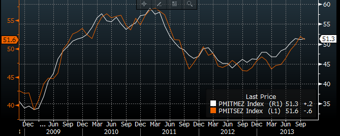 Eurotsooni teenuste lõplik PMI 51,6 vs esialgselt avaldatud 50,9 (septembris 52,2)