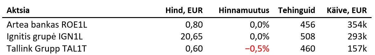 Aasia aktsiaturud kauplesid öösel positiivses meeleolus. Nikkei rallis 4,8%, kuna valitsuspartei valimised sillutasid teed fiskaalselt leebe ja majandust stimuleeriva Sanae Takaichi peaministriks saamisele, mis suurendas ootusi täiendavatele toetavatele meetmetele Jaapani majanduses. Kospi kerkis 2,7%, kuid ASX200 langes 0,1% ja Hang Seng tuli allapoole 0,6%. Brenti toornafta kallines 1,3% 65,4 dollarile, Bitcoin langes 0,8% 123 886 dollarile ning Ethereum püsis muutumatuna 4566 dollaril. EUR/USD nõrgenes 0,3% 1,1704 dollarile ja unts kulda maksis 3936 dollarit (+1,3%).