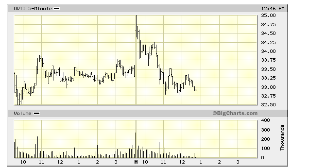 Turg on täna korraliku müügisurve alla sattunud ning ilmselgelt polnud OVTI-l kütust tänasele langusele vastu seista. Nagu hommikul öeldud oli olemas tõenäosus, et turuosalised kasutavad OPCO calli müügipõhjusena ning nagu näha on täna kõik endale müügiks põhjuse leidnud. OVTI leidis mõningast ostuhuvi küll eelturul ja turu esimestel minutitel, sest aktsia avanes $34,47 peal ehk 3% plusspoolelt ning käis kiirelt ära ka $35 all, aga sealt edasi on aktsia allapoole tulnud ning hetkel kaupleb $32,40 kandis, 3,3% miinuspoolel.