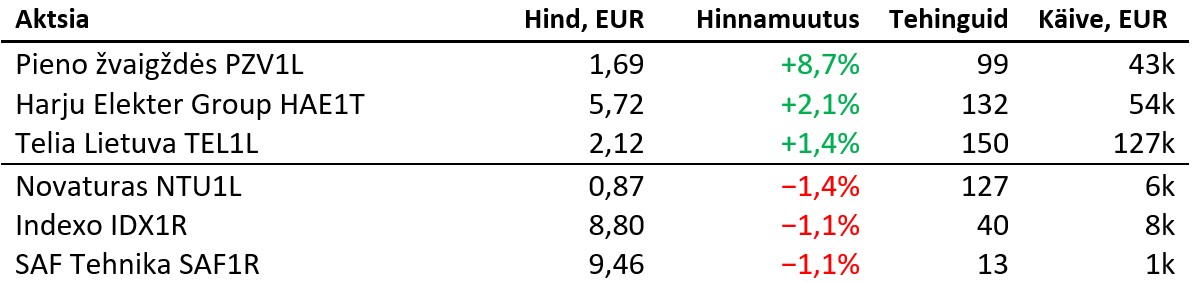 Balti põhinimekirjas tehti teisipäeval 5783 tehingut ning käive oli 3,775 miljonit eurot, millest Tallinna börsi käive moodustas 1,563 miljonit eurot ning Vilniuse börsi käive 2,163 miljonit eurot. Tehinguid tehti vastavalt 3394 ning 2147.