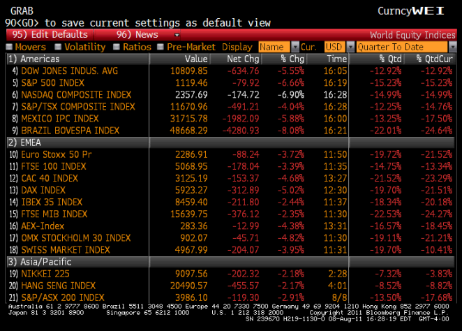 ZH toob välja, et DJIA tänane 634-punktine langus on indeksi ajaloos suuruselt kuues (graafik). Üldsegi oli tänane pilt päris karm: