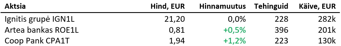 Aasia aktsiaturud kauplesid öösel plusspoolel: Nikkei kerkis 1,4%, Hang Seng 0,6%, Shangai Composite 0,2% ja Kospi 0,3%. ASX200 langes 0,3%. Brenti toornafta kallines 1,6% 66,1 dollarile, Bitcoin kerkis 0,5% 111 121 dollarile ja Ethereum kallines 0,2%, kaubeldes 4298 dollaril. EUR/USD püsis muutumatuna 1,1717 dollaril ja unts kulda maksis 3593 dollarit (+0,2%).