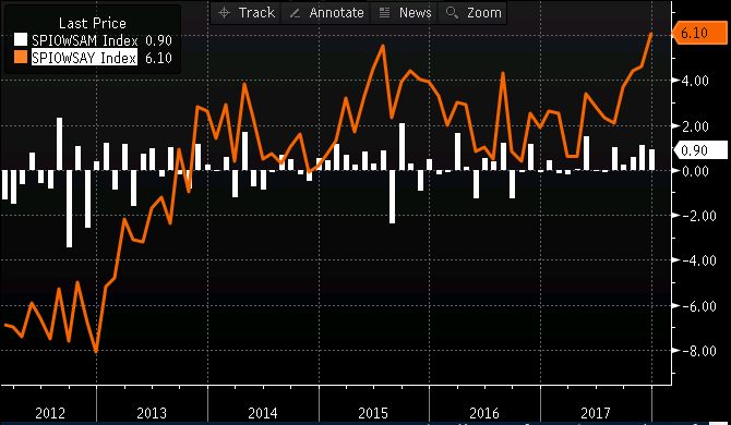 Hispaania tööstustoodang kasvas detsembris MoM 0,9% pärast novembri 1,1% tõusu, mis oli palju tugevm kui oodatud -0,3% langus. Mullusega võrreldes kiirenes kasv 4,6% pealt 6,1%le.