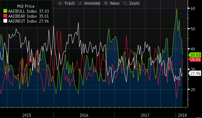turgude langus on toonud alla ka USA väikeinvestorite seas pullide osakaalu, mis jätkas viimase nädala jooksul langust ning alanes 44,8% pealt 37,0%le. Järgmise kuue kuu väljavaate suhtes negatiivselt meelestatud investorite osakaal kerkis 28,8% pealt 35,0%le ning neutraalse hoiakuga investorite osakaal tõusis 26,5% pealt 28,0%le