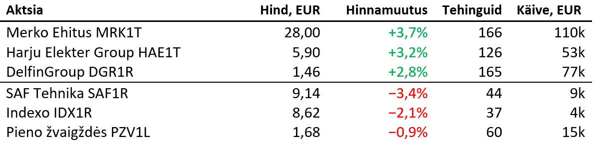 Enimkaubeldud aktsiad olid: