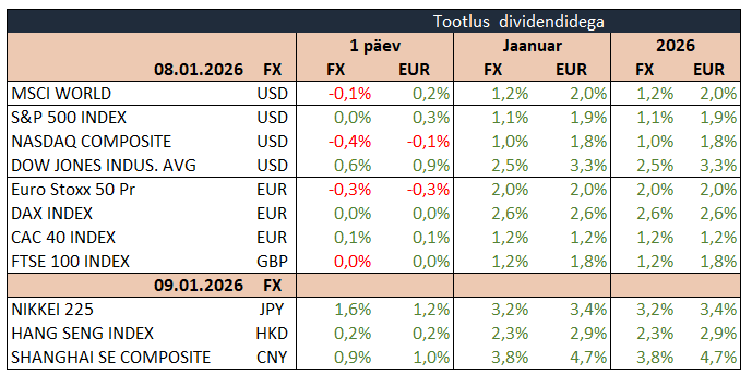 Täna on tähelepanu keskpunktis USA detsembri tööturu raport, mille puhul ootavad analüütikud väljaspool põllumajandussektorit loodud töökohtade arvuks 66 tuhat (novembris 64 tuhat) ning töötuse määra langemist 4,5% peale.