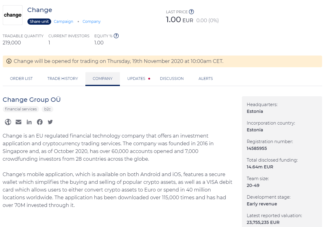 IPO toimumist pole praegu arutatud, kuid Change´i enda token CNG saab olema ettevõtte poolt hallatava kasvuettevõtete "börsi" esimeseks instrumendiks. Eeldan, et lähiajal traditsioonilist IPO-t ja aktsiateks konverteerimist ei tulegi ja Change jätkab enda tokeniseeritud aktsiate/varade kauplemisplatvormi Change Exchange edasiarendamist.