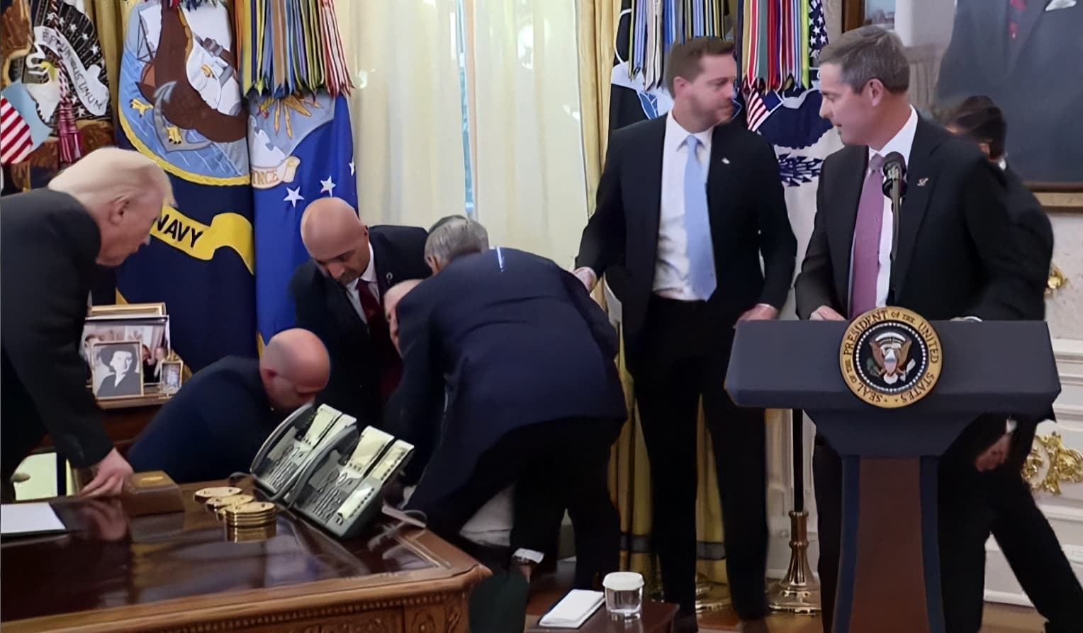 Selliseid olukordi on Trumpil tulnud üle elada palju. Kõige rohkem tema rallidel. Keegi publikust minestas, kukkus kokku, tal hakkas halb .Kas kuum ilm, vähe vedelikku joonud ,südameprobleem, mingi neuroloogiline probleem vms.