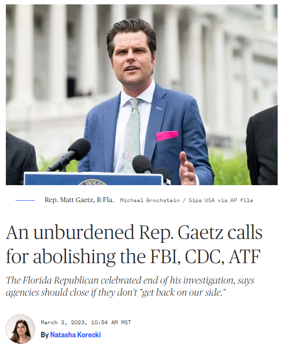 Nagu ma aru saan siis ta oli 2021 käinud mõnede teiste Florida vabariiklastega mingite naiste seltsis Bahamal, mille peale Bideni justiitsministeerium kukkus nuhkima, et kas nood naised olid äkki alaealised, kas ja kes nendega magas ja mis neile vastutasuks anti. Uurimine lõpetati leidmata kolme aasta jooksul midagi milles teda süüdistada, saati veel süüdi mõista, aga noh, mingid pässid Esindajatekoja eetikakomisjonis üritavad ikka edasi, seda ei saa neile keelata.