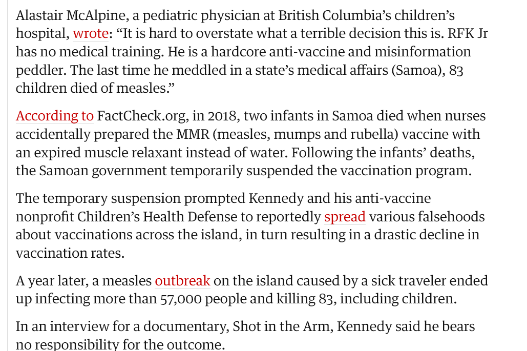83 inimese surma seostamine sellega, mida RFK jr aasta varem tegi või ei teinud on täiesti absurdne laim.