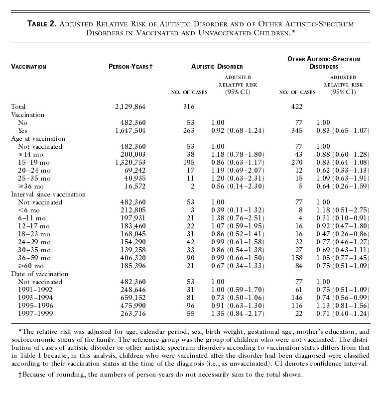 Lihtne jagamistehe näitab, et vaktsineerimata lastest on 0,027% autistid+autism spectrum disorder. Vaktsineeritutest 0,037%.