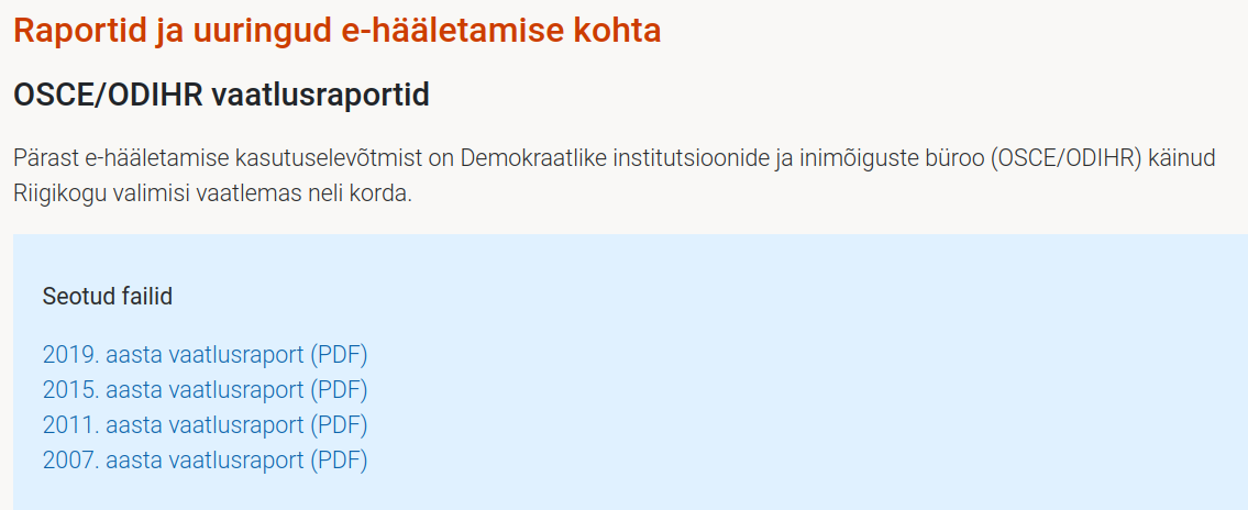 Vastates iseendale - siin on link raportile: Estonia_ODIHR_Opinion_internet_voting.pdf
