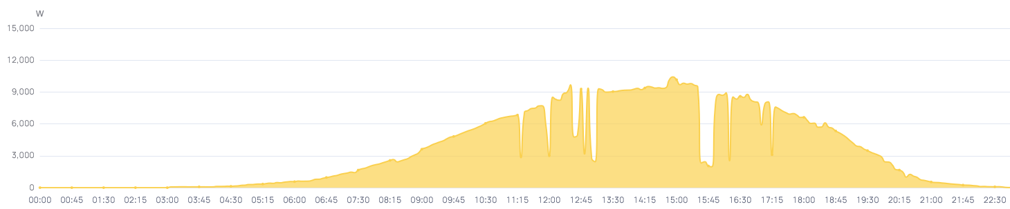 Samas sellisel ümmargusel graafikul on tipus väike ümarik kühm, mis selle võis põhjustada? Kas mingi katuseservaplekk või korstnaplekk peegeldas lisavalgust mõnele päikesepaneelile?
