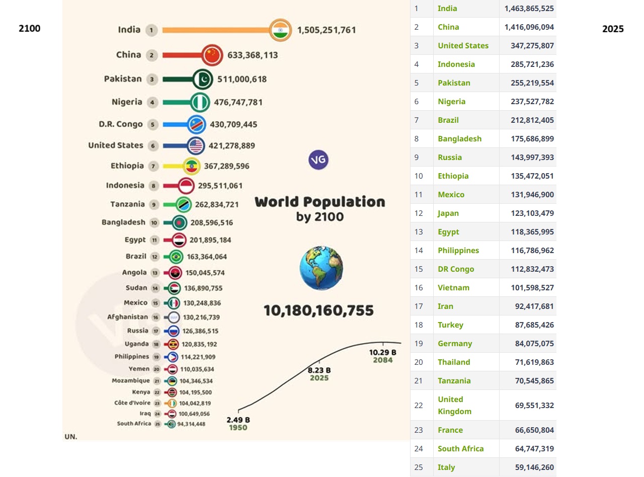 Pakistan, Nigeeria, Egiptus ja Indoneesia 2025 vrs 2100 - rahvaarvu kasv 2 korda !?!