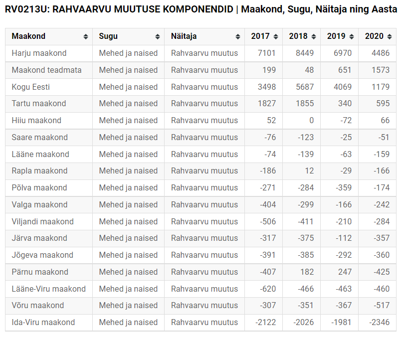 Mu enda tähelepanekud nendest muutustest on sellised, et näiteks Järva ja Jõgeva maakonnad jooksevad inimestest kiiremini tühjaks kui ülejäänud. Tabelis umbes -360 inimest ei tundu teiste maakondade kõrval palju, aga neis on alla 30 000 inimese.