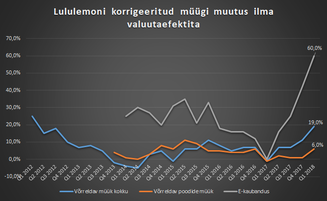 Lululemoni esimese kvartali tulemustele vastu minnes olid ootused kahtlemata kõrged, kuid ettevõte suutis neid ületadad ning lisaks kergitatati prognoose. Vaatamata sellele, et ettevõte jätkuvalt otsib endale uut juhti ning konkurents on spordirõivaste turul karm, müüvad firma tooted piisvalt hästi, et särada esimeses kvartalis võrreldava müügi 19% kasvuga (saades osaliselt tuge madalast võrdlusbaasist) ning mullusest tugevamate marginaalidega.