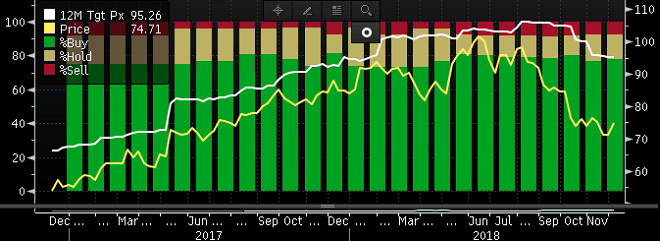 Analüüsimajad on viimastel kuudel toonud ootusi alla ning koos sellega on liikunud madalamale ka keskmine 12kuu hinnasiht