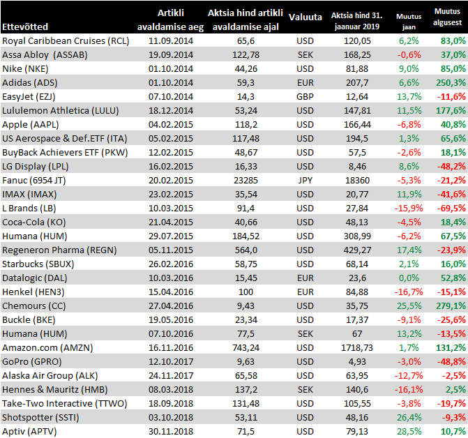 Väikse hilinemisega jaanuari muutused