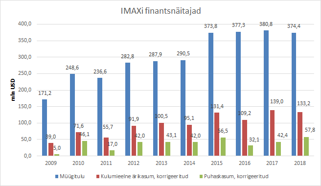 Imax lõpetas eelmise aasta oodatust positiivsemate tulemustega, näidates viimases neljandikus YoY käibe langust peamiselt mdalama filmitulu tõttu, mis moodustas 38% käibest ning kipub sõltuma blockbusteritest. Uusi tellimusi saadi mullu kokku 122 vs 170 2017.a (upgrade'e arvestdes 234 vs 177) ning installeeriti 149 süsteemi vs 165 eelneval aastal, mis kokkuvõttes kergitas aasta lõpuks täitmata tellimuste mahu 499 pealt 564le. Ettevõte ise on tänavuse filmivaliku osas optimistlikult meelestatud.