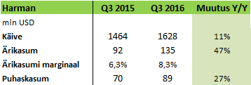 Harmanilt pettumust valmistanud Q3 2016 tulemused, lisaks kärbiti prognoose: