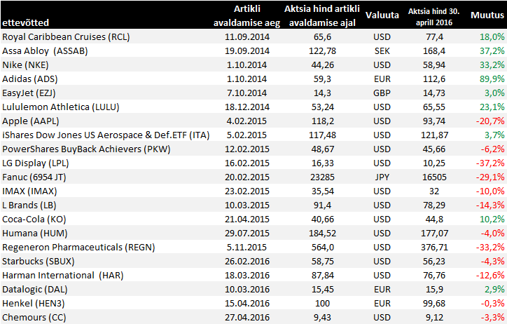 • 2016. aasta EPSi prognoos langetati $6,2 peale varasema $6,5 pealt (vs konsensuse $6,46 suurune ootus)