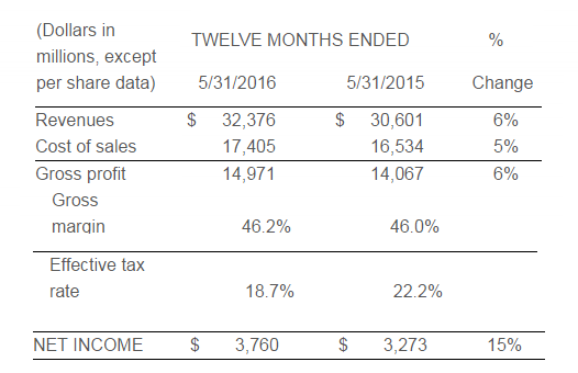 Co issues upside guidance for FY16, sees EPS of $6.15-6.35 (Prior $5.90-6.10), excluding non-recurring items, vs. $6.07 Capital IQ Consensus Estimate.