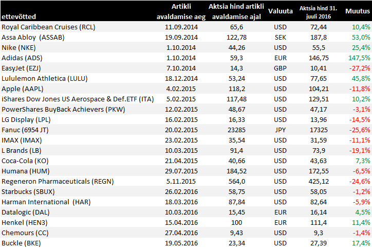 Fanuci käive vähenes FY2016 esimeses kvartalis -35,4% Y/Y ehk 127,6 mld jeenini, ärikasumi marginaal langes 32,8% peale aastataguse 37,5% pealt ning puhaskasum vähenes -40% Y/Y ehk 30,2 mld jeenini. Võrdlusena, aasta varem kasvas Fanuci käive +21% Y/Y ning puhaskasum +12%. Konsensus ootas Fanuci esimese kvartali käibeks 129 mld jeeni ning puhaskasumiks 24,5 mld jeeni. Ettevõtte tellimused vähenesid kvartalis -22% Y/Y ehk 141 mld jeenini.