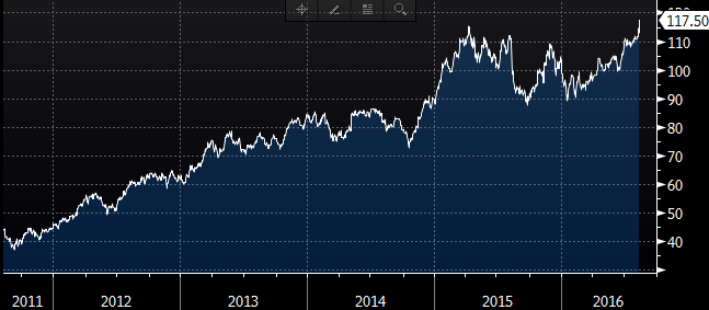 Co lowers guidance for FY16, sees EPS of $6.00-$6.10, down $0.20 from the midpoint of earlier guidance, and vs. $6.21 Capital IQ Consensus Estimate. The lowered guidance is due to a $0.27 negative impact from currency and fuel rates, of which approximately $0.14 is related to weakness in the British Pound following the Brexit vote.