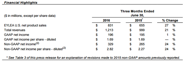 Regeneron Pharmaceuticals, Inc 2016/Q2 tulemused: