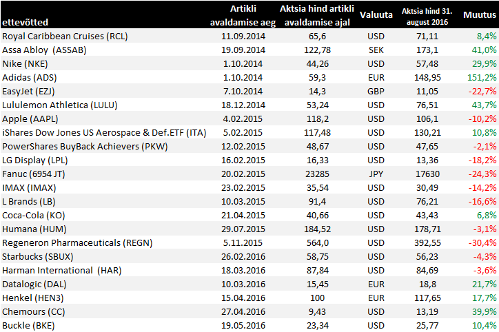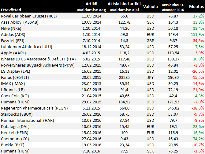 Kuna Chemoursi artikli juures mainisin, et oman isiklikult ettevõtte aktsiaid, siis arvan, et oleks õiglane mainida, et eilse seisuga müüsin oma osaluse ettevõttes. Kuigi hoiame endiselt Chemoursi tegemistel silma peal (mistõttu jääb ettevõte ka nimekirja), siis mulle tundub, et ettevõte on saavutanud oma õiglase väärtuse.