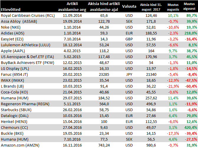 Muutused 31. augusti seisuga
