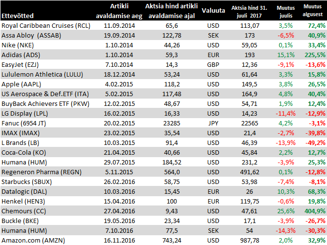 Sarnaselt konkurentidele raporteeris ka Adidas tugevad esialgsed teise kvartali numbrid, mille baasil kergitati prognoose. Täpsemad tulemused 3. augustil.