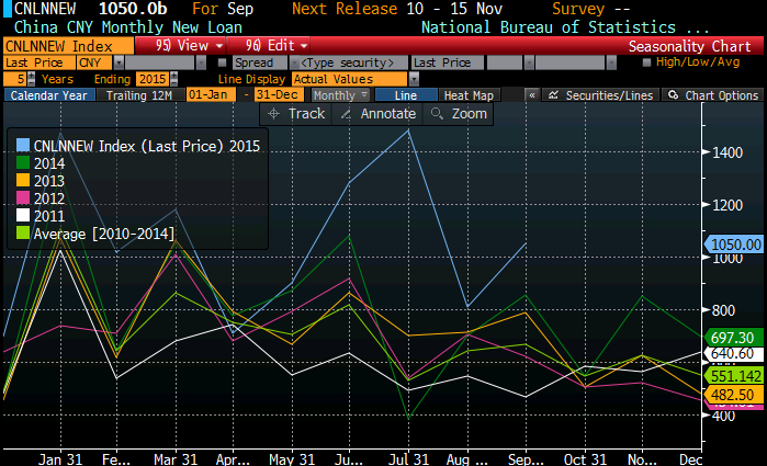 Uute laenude väljastamine on Hiinas kasvamas varasemate aastega võrreldes suuremate mahtude juures....septembris väljastati 1,05 triljonit jüaani uusi laenusid vs oodatud 0,9 triljonit ning 0,8096 triljonit augustis.