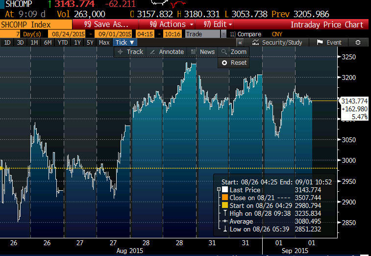Hiina aktsiaturul on päeva teise poole sessioon viimastel päevadel olnud esimesega võrreldes märksa positiivsem. Näis kas valitsus tõttab koos abilistega ka täna appi. Shanghai Composite hetkel ca -2%