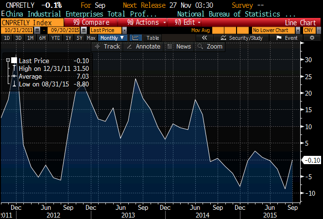 Hiina suuremate tööstusettevõtete kasumid kahanesid septembris YoY -0,1%, mis oli parem kui augustis registreeritud -8,8%, mil statistikaameti kohaselt avaldas mõju valuuta tugev kõikumine.