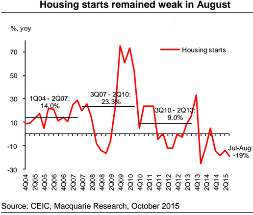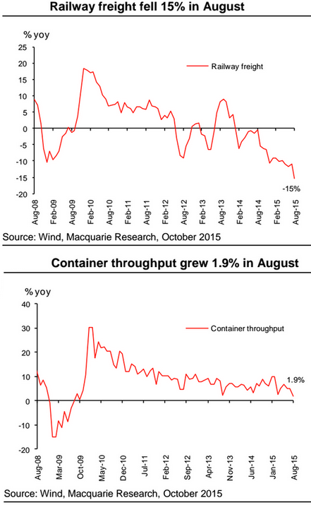 Mõned Macquarie graafikud Hiina kohta, mis ei jäta kolmandast kvartalist kuigi head muljet
