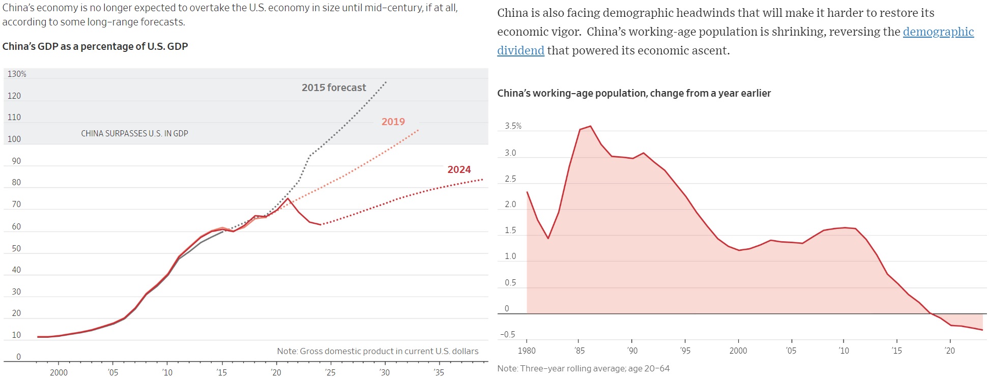WSJ: China’s go-go days are behind it as the world’s second-largest economy struggles with the bursting of the biggest real-estate bubble ever. Now, China’s goal of overtaking the U.S. as the world’s largest economy might take decades longer than Beijing expected—if it happens at all.