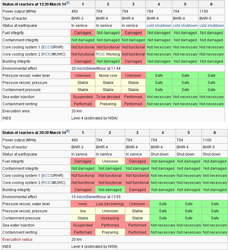 - Pühapäevane uudisnupp enne kui kolmanda reaktori jahutuskatel õhku lendas. Seal on ka video RT intervjuuga, kus intervjueeritav väidab, et kuna on 6 reaktorile hoiatus väljastatud, on asi tõsisem kui Jaapani valitsus räägib - Nuclear Plant Designer Says Japanese Government Suppressing Scale Of Crisis