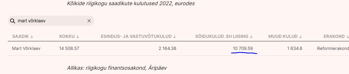 ...Võrklaeva mõtet jätkates, kui inimene töötab riigikogus, siis peaks ta olema piisavalt jõukas, et enda auto eest ise maksta.