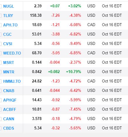 velvo Kuna 17.oktoober avab Kanada kanepile turu, siis kõhutunne ütleb (arvestades viimase aja langusi), et praegu on ehk sobilik aeg vaikselt soetada. Ise oman juba mitmeid. Riskikartlikumad võivad vaadata ETF-i HMMJ.TO. Sellega on loota hetkehinna juures ca 6% dividendi. Mitte, et firmad maksaksid dividende vaid see tuleb lühikeseksmüüjate taskust (ETF laenab välja).