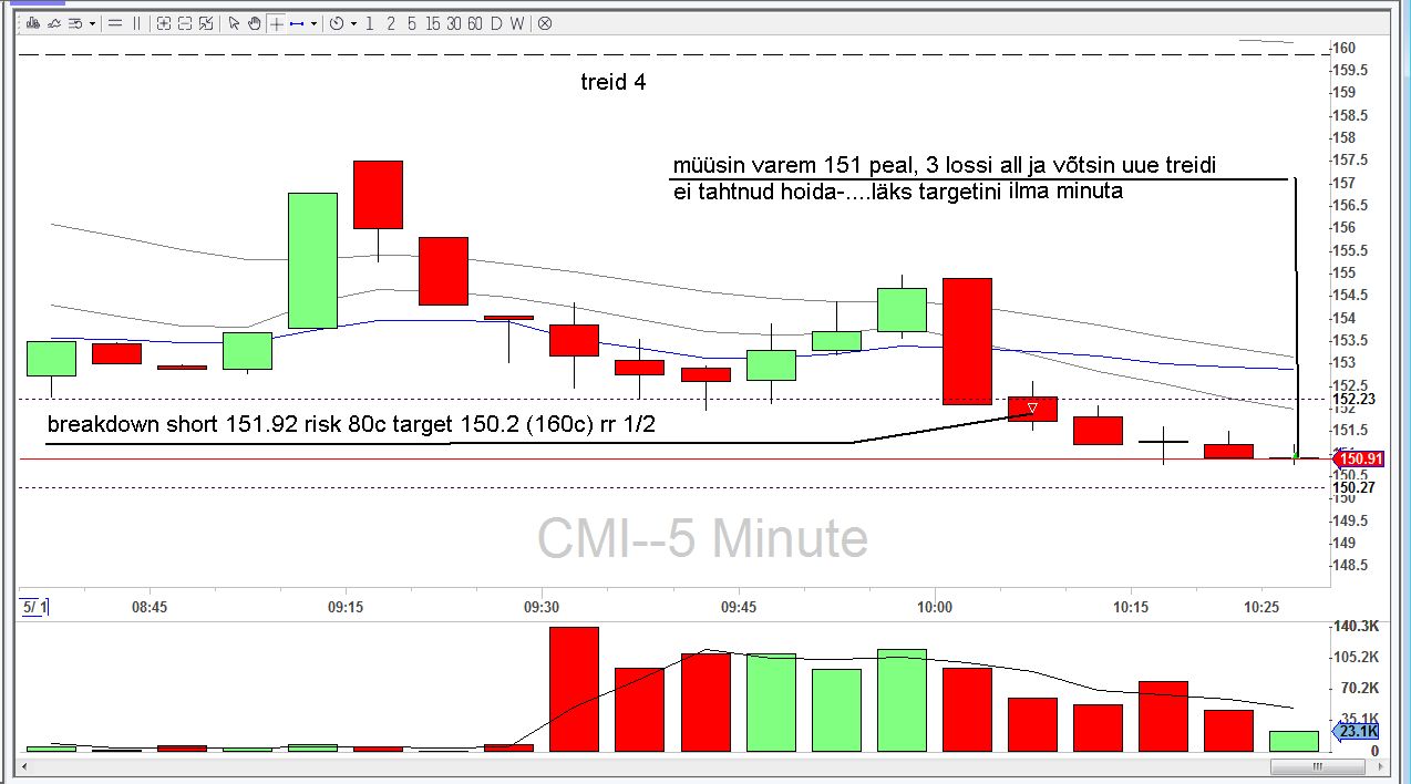 Täna suutsin juba paremini manageerida riske ja hoida treide õieti tulid küll lossid aga kõik oli enamvähem planeeritult.lihtsalt selline päev kus midagi eriti ei töötanud..