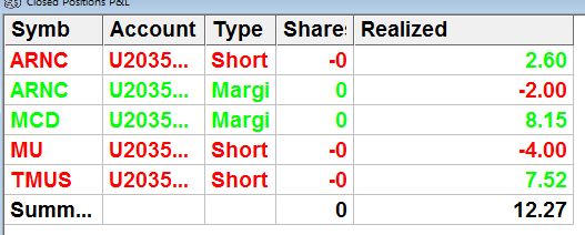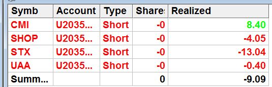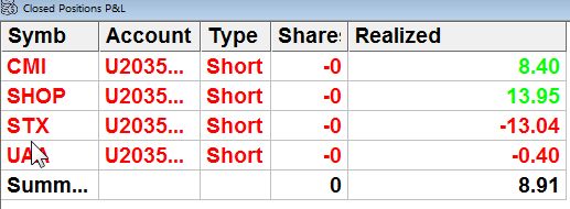 Täna siis esimene katsepäev hardstop/targeti panekul langetasin riski natuke 5 dollarini kuna pole veel kõik selge mis toimuma hakkab. Algus oli rabe, panin küll stopid välja aga kui nägin ,et stock ei tee seda mis vaja müüsin ikka enne stoplossi ära. Hilisematel treididel parandasin selle vea ja lasin neil minna targetini/stoplossini. Täna see töötas korralikult.