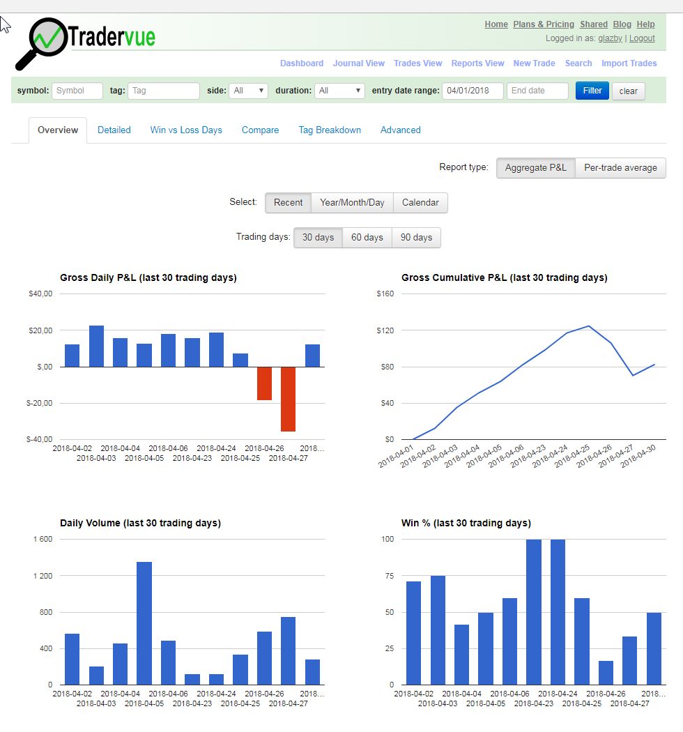 Aprilli kokkuvõte, 9 võidupäeva 2 lossipäeva kokku +9 riski summasid on mõtetu vaadata IB saab need endale teenustasude näol. Koos teenustasudega -27 dollarit kuu, nii väikest "õppemaksu" pole ammu maksnud siia tuleb juurde platvormitasu 150 dollarit ja trade-ideas scanner 60 dollarit kokku siis "õppemaks" või "hobikulu" aprillis 240 dollarit (ca 200eur)