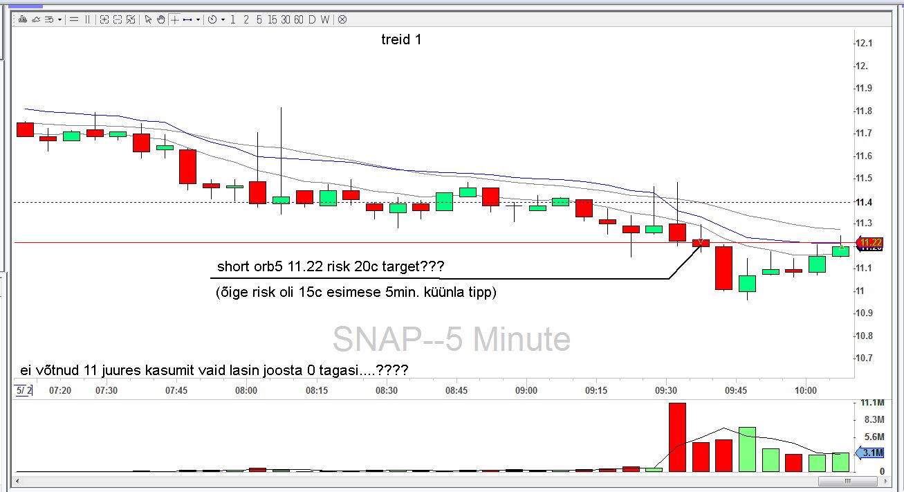 hommikul, vaadates oma eilset lindustust üle jäi silma huvitav olukord mida ka eile märkasin, enne SNAPi murdumist oli müüjate ja ostjate vahekord 1/1000 ja suur müüjate ülekaal kestis kuni 11ni välja siis tulid ostjad peale põhimõtteliselt oleks saanud ainult seda jälgides kaubelda ja müüa ära õigel ajal 11 kandis aga ma tegin samal ajal mõtetut MU treidi ja ei jälginud seda...nii puhast signaali kohtab harva
