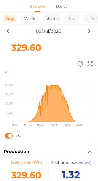 Tead, ei ole nii. Kui hommikul on õhk klaar ja läbipaistev, paneel on jahe, siis on toodang kõige suurem ületades isegi paneeli nimivõimsust. Vaatamata sellele, et päikese nurk ei ole lõunasse suunatud paneeli suhtes ideaalne. Kui päeva peale läheb kuumaks, õhku täidab kuumuse sumu, siis paneeli tootlikkus langeb alla nimivõimsuse vaatamata sellele, et päike “on kõige kõrgemal”. Oma kogemusest tean rääkida.