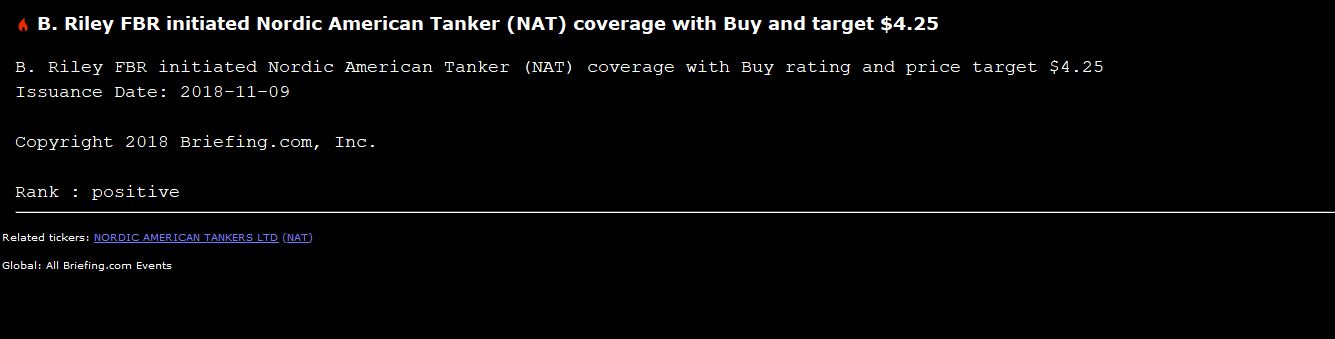 Nordic American Tankers Ltd (NYSE: NAT) - Tanker market up further. Good prospects for dividend payments.
