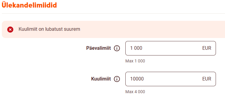 - sama isiku omaenda kontode vahel saab ülekandeid teha limiidivabalt