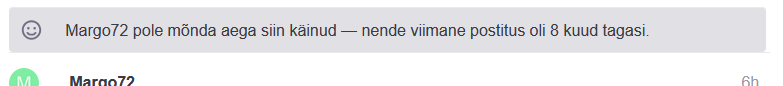 postituse kuval kasutaja värviline “mummu” - küll visuaalne ja teisejärguline probleem, aga tasuks ka ehk ümber teha. Mida vähem kasutaja/lugeja jaoks on ebaolulist, silma ja aju segavat “mudru”, seda lihtsam on infos orienteeruda. Ehk “müra” tase madal. Info on kuld, uus vesi ja niivõinaa liiga palju infot vaja tarbida. Seega efektiivsus ja veelkord efektiivsus. Üks idee: